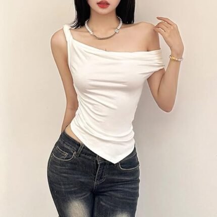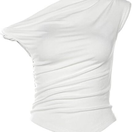 Women’s Off Shoulder Casual Short Sleeve Shirt Women’s Slim Fit Cotton T-Shirt Irregular Hem