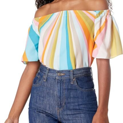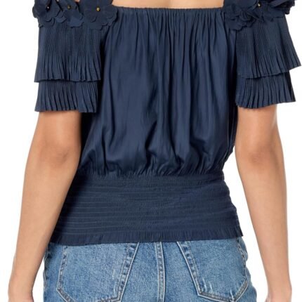 About this item Short sleeve Pleated sleeve detail Flower embellishment Smocked hem Off shoulder neckline