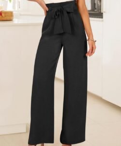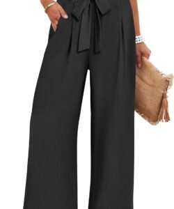 Womens Wide Leg Pants Belted High Waisted Business Casual Flowy Long Trousers with Pockets