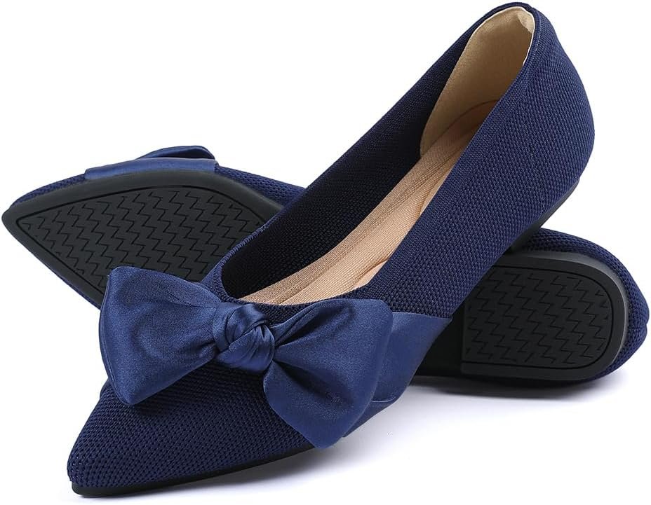Pointed Toe Ballet Flats for Women Slip On Comfortable Flats with Bow Dressy Casual Work Shoes