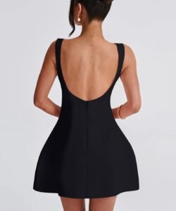 women Sexy Sleeveless Crew Neck Backless A-line Party Short Mini Dress