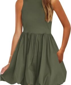 Summer Dresses for Women 2026 Casual Sleeveless Tank Mini Short Dress Crew Neck Bubble Sundress with Pockets
