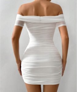 women Pearl Beaded Off Shoulder Short Dress Short Sleeve Bodycon Party Dresses