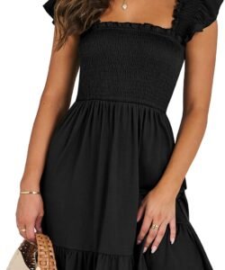 women 2026 Summer Short Puff Sleeve Casual Short Mini Dresses Tie Back Square Neck A-Line Sundress