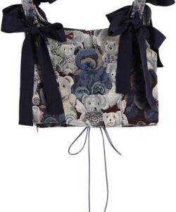 Korean Cute Bear Bow Women Suspender Vest Vintage Casual Sleeveless Off Shoulder Ladies Crop Tops
