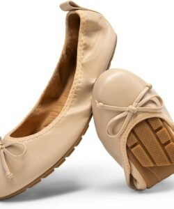 Women’s Flats, Foldable Ballet Flats for Women, Bowknot Round Toe Comfort Light Weight Slip-On Dress Shoes