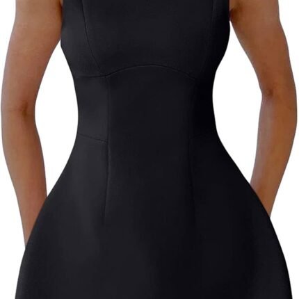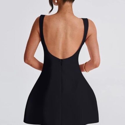 women Sexy Sleeveless Crew Neck Backless A-line Party Short Mini Dress