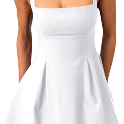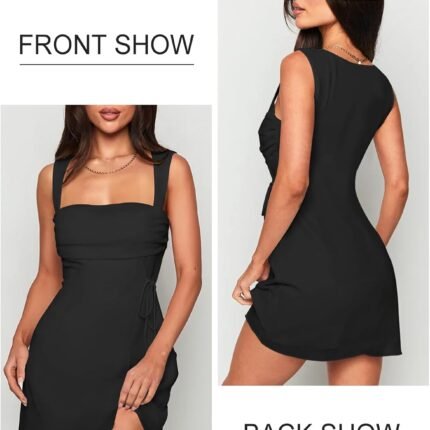 women Sexy Sleeveless Square Neck Adjustable Straps Bow Tie A-line Mini Party Club Dress